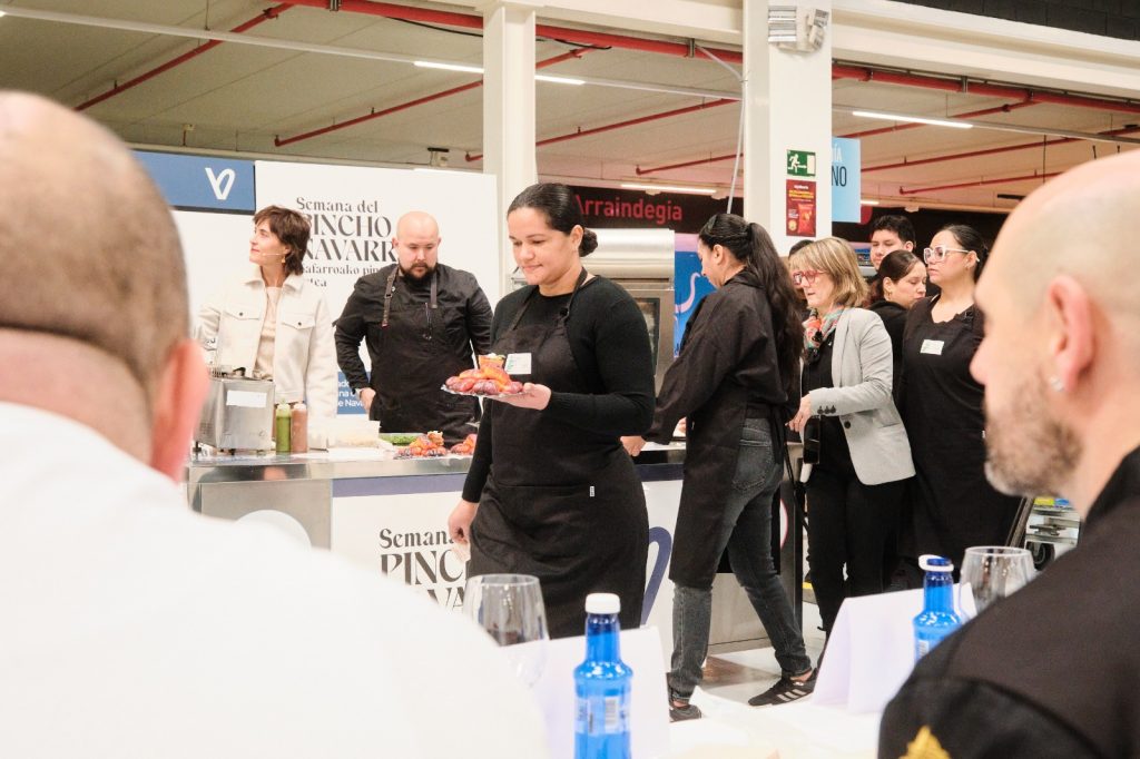 El grupo de alumnado del Certificado Profesional de Básicas de Hostelería y Bar, dirigidos por su profesora Charo Aldave, ha participado recientemente en el servicio de la semifinal de la 26ª Semana del Pintxo de Navarra, una cita de referencia en el sector gastronómico navarro que reúne a algunos de los mejores profesionales de la Hostelería.