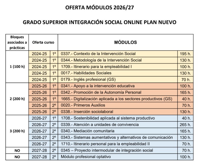 Oferta de módulos Plan nuevo